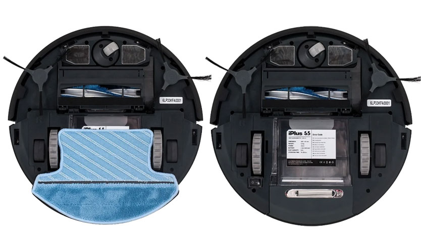 Lors du remplacement du dépoussiéreur par un récipient contenant de l'eau, le robot effectue un nettoyage humide sur tout type de surface (carrelage, stratifié, linoléum). Pour ce faire, vous devez attacher une serviette en bas. Sa largeur est de 28 cm, ce qui vous permet de couvrir presque tout l'espace sous l'aspirateur. L'eau y est fournie automatiquement et l'excès d'humidité est éliminé de la même manière. Grâce à ces possibilités, le sol est essuyé uniformément. Il reste sec et ne laisse pas de traces sur la surface.