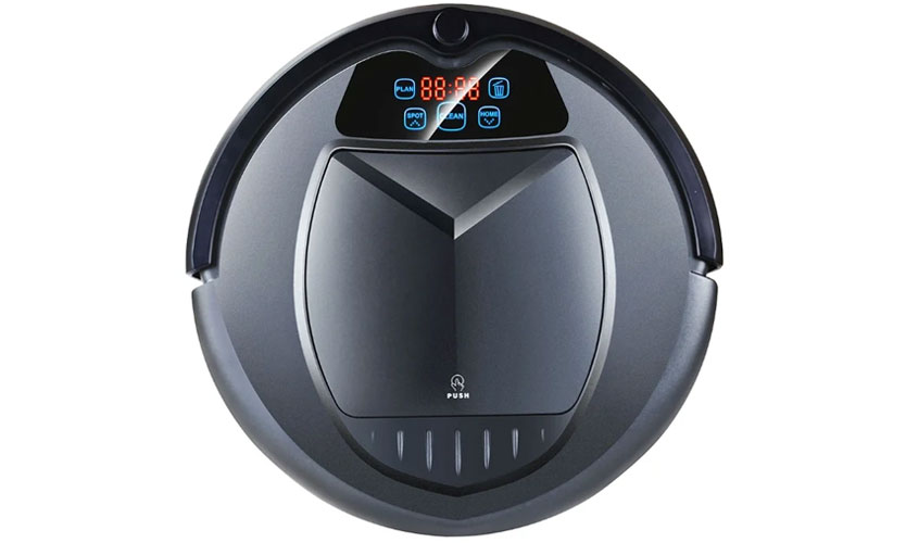Le robot a une forme ronde typique de la plupart des nettoyeurs avec un diamètre de 33 cm, une hauteur de 8,5 cm et un poids de 3 kg. Le corps est gris, en plastique de haute qualité, ce qui donne un certain charme à l'aspirateur. Il y a un affichage de la minuterie sur le dessus de l'appareil. Les icônes principales à l'écran indiquent les fonctions exécutées, ainsi que l'heure de fin du programme et le niveau de la batterie. La surface latérale est équipée d'un pare-chocs doux au toucher. Ci-dessous dans l'aspirateur sont visibles: