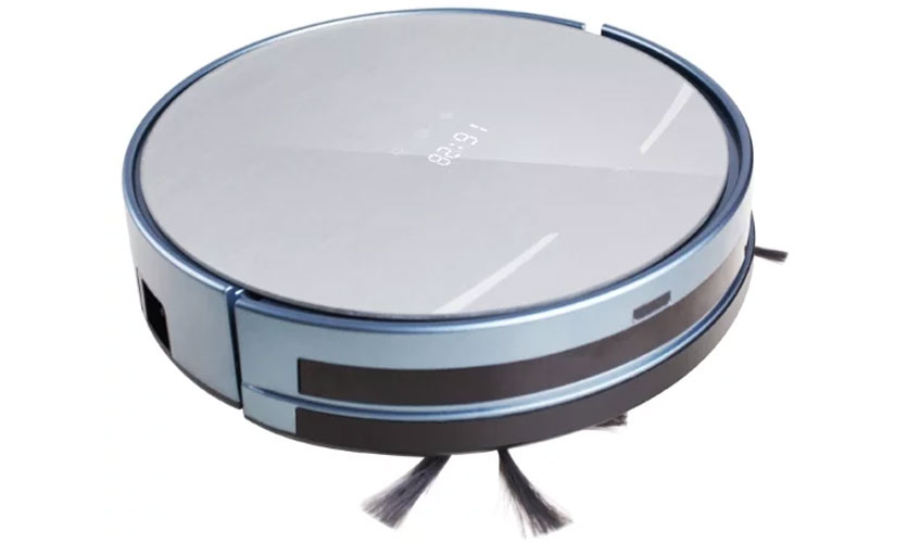 L'aspirateur a une forme ronde familière avec un diamètre de 32 cm et une hauteur de 8,8 cm et pèse 3 kg. Le corps est en plastique et la partie supérieure est en verre durable. Il contient des boutons de commande tactiles et un écran LED qui affiche l'état de l'appareil au moment actuel et montre l'heure.