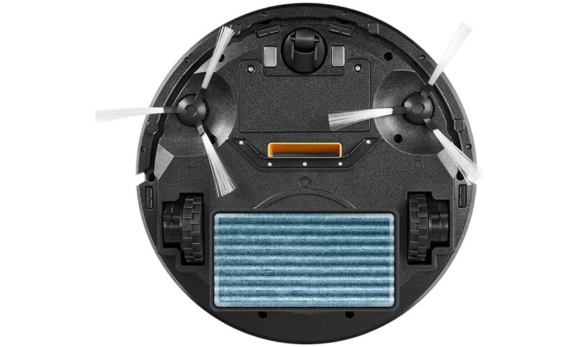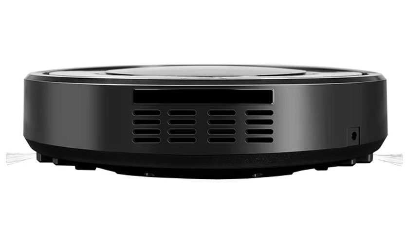 La surface latérale a un pare-chocs souple qui empêche les collisions avec les meubles, il y a aussi des trous de ventilation et une prise pour se connecter au secteur (pour une charge directe). Au bas du robot se trouvent: