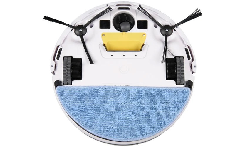 Pendant le fonctionnement, l'assistant robotique ramasse les débris au centre avec des brosses latérales, où ils sont aspirés dans la buse, puis versés dans la poubelle. Les petites particules sont retenues sur le filtre à mailles, les microparticules se déposent sur le deuxième étage du système de filtration.