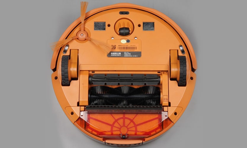 L'algorithme de ramassage des ordures suit ces étapes: une brosse latérale ramasse les débris au centre, où une raclette en caoutchouc déplace les gros débris dans l'ouverture d'aspiration, et une brosse à poils ramasse les gros et les petits. Il y a des dents sur le bord du volet d'aspiration qui éliminent les débris des poils de la brosse. La deuxième étape du nettoyage - les débris restant sur le sol après le passage des brosses sont aspirés dans l'espace entre les grattoirs en caoutchouc dans la partie inférieure du dépoussiéreur, où ils se déposent sur le filtre. Un tel algorithme de travail rapproche le robot des aspirateurs classiques, car une partie des débris est aspirée depuis la surface même du sol.