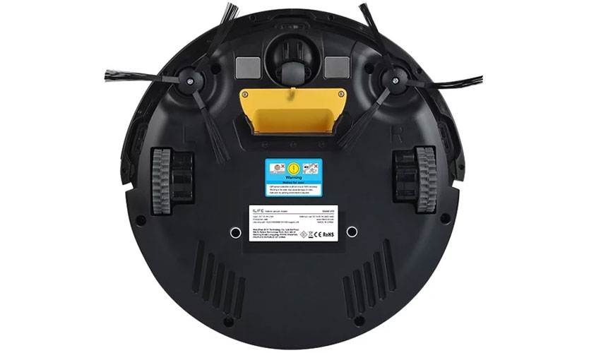 L'iLife V55 est rond. Le corps est en plastique doré. Passepoil blanc sur les côtés.