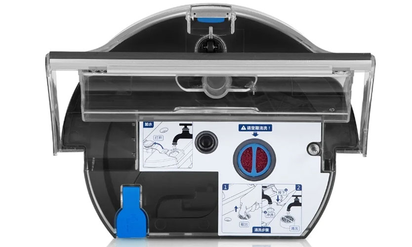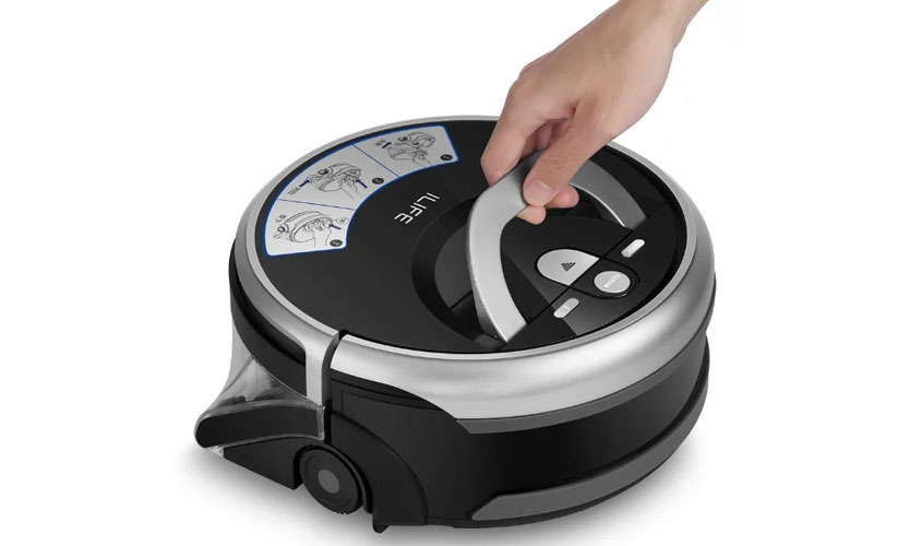 Le mouvement sans obstruction de l'aspirateur est assuré par des capteurs et des capteurs qui avertissent des objets dans la situation et d'un changement de hauteur. Vous pouvez contrôler l'appareil avec la télécommande ou les boutons sur le corps. Avec l'aide de l'un d'eux, le lancement est effectué, le second permet de sélectionner le mode et le troisième montre l'état du robot en ce moment. À la fin des travaux, il est nécessaire de vider l'eau sale du récipient, de le rincer et de la brosse. Si nécessaire, vous pouvez limiter la zone de nettoyage avec un mur virtuel.