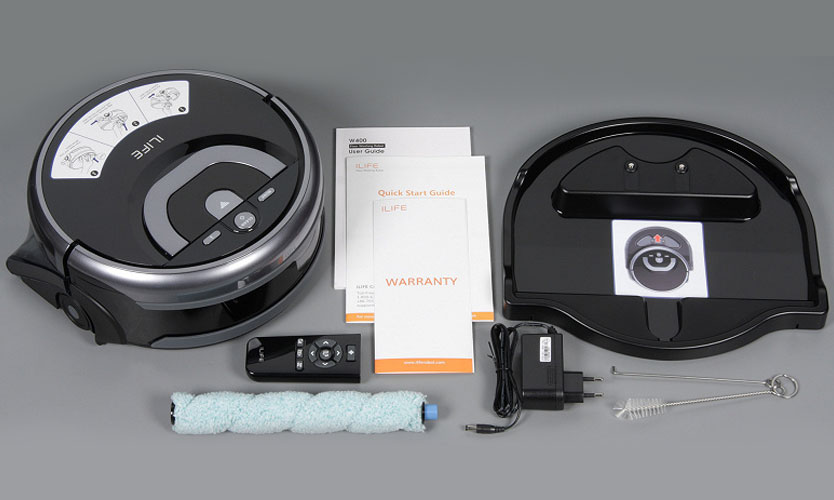 iLife W400 fonctionne avec une nouvelle technologie. Après la mise en marche, du liquide est pulvérisé devant l'appareil à partir d'un réservoir d'eau propre à l'aide d'une pompe interne à travers trois paires de trous. Ensuite, la brosse à rouleau s'allume et commence à nettoyer le sol. Derrière, il y a un grattoir qui ramasse l'eau sale restante vers l'entrée d'aspiration. Tous les déchets finissent dans le bac à eaux usées. L'aspirateur a les modes suivants: