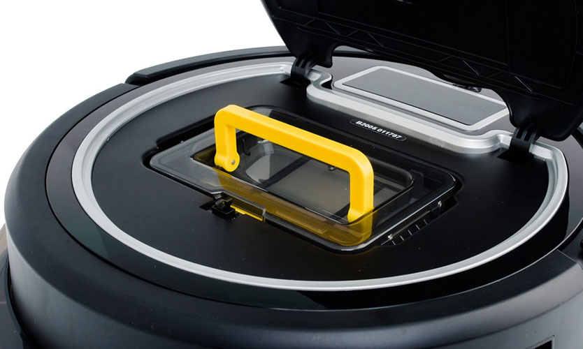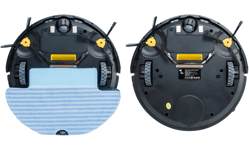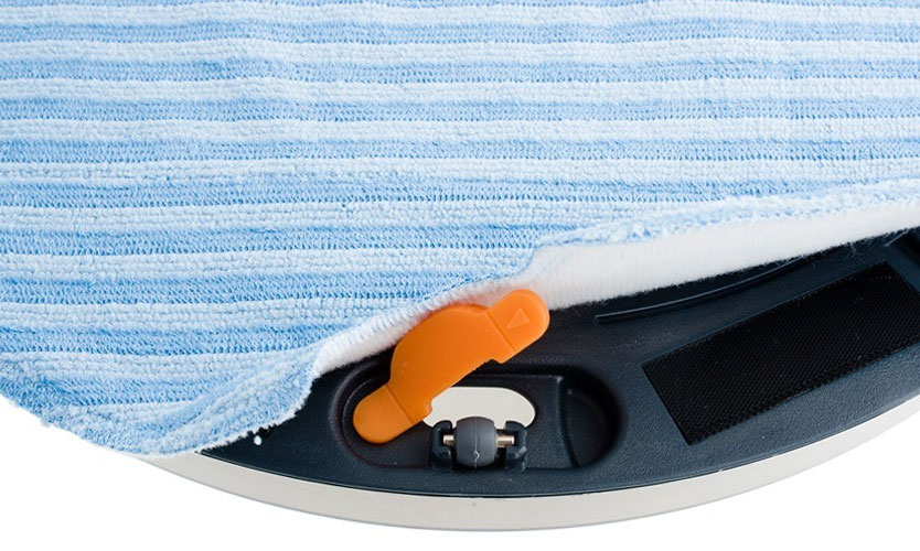 Pour effectuer un nettoyage humide, il est nécessaire d'installer un appareil spécial avec une serviette en microfibre sur le fond, remplissez le réservoir d'eau. Le liquide est fourni au chiffon à partir du réservoir par la méthode goutte à goutte à travers des trous spéciaux. Dans ce cas, le robot est capable de collecter l'excès de liquide du sol. Le volume du réservoir est suffisant pour nettoyer 50 à 60 mètres carrés de sol.