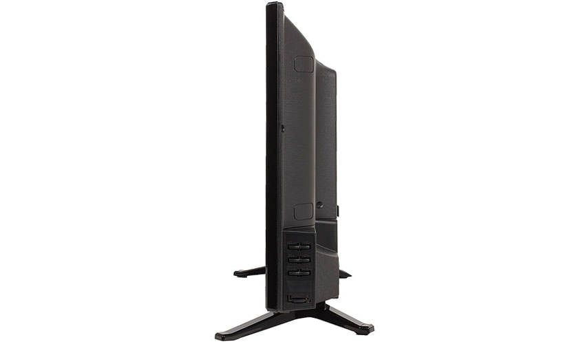 Le corps est en plastique noir ordinaire. Dimensions - 510 × 340 × 165 mm. Il y a un support pour l'installation sur une table ou une bordure, vous pouvez l'accrocher au mur, mais un support supplémentaire avec des dimensions de montage de 100 × 100 mm est nécessaire. Poids du téléviseur - 2,3 kg.