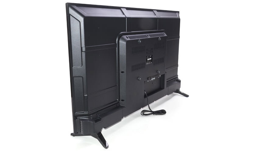 Le téléviseur a l'air compact, les boutons de commutation sont situés à l'extrémité du téléviseur, ce qui a permis au fabricant de réduire la largeur des cadres. Le modèle a une épaisseur de 7,7 cm L'ensemble est livré avec un support noir, vous pouvez l'accrocher au mur: la norme de montage est VESA 200 × 200. Conception universelle - noir brillant.