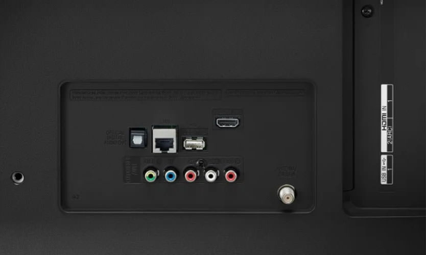 Le panneau arrière contient des connecteurs standard: composante, composite, pour réseau local, télévision par satellite et par câble, HDMI, USB, sortie audio optique. Sur le panneau latéral, il y a 2 ports HDMI, 1 USB, CI +. Il y a Bluetooth, Wi-Fi.