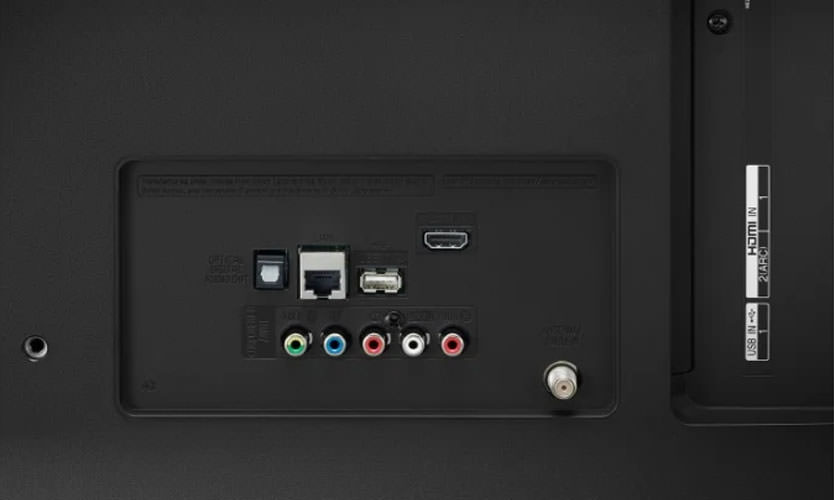 En termes de nombre et de destination des connecteurs, le modèle est inférieur aux autres modèles économiques. Disponible - 2 USB, 3 HDMI, sortie optique, Ethernet. Ils suffisent pour connecter votre PlayStation préférée ou un tout nouveau cinéma maison. Mais il n'y a pas de sortie audio analogique pour le centre de musique.