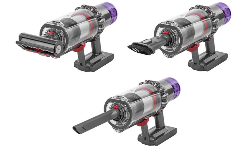 Le Dyson V11 Absolute est conçu pour collecter toute litière sèche, y compris les poils d'animaux, sur une variété de revêtements de sol. Grâce à son équipement, il a la capacité de reconnaître le type de surface à nettoyer et, en fonction des propriétés de cette dernière et du degré de sa contamination, d'ajuster la puissance d'aspiration. Cette fonction est possible grâce à un ensemble spécial de capteurs de charge dynamique, mais uniquement lorsque la turbo brosse principale est en fonctionnement. Il a une sorte de structure rotative, composée de deux types de villosités. Une bande se compose de poils de nylon rigides, l'autre est douce avec des poils de carbone antistatiques. L'utilisation de cette brosse nettoiera en profondeur le tapis et collectera la plus fine poussière de la surface dure.