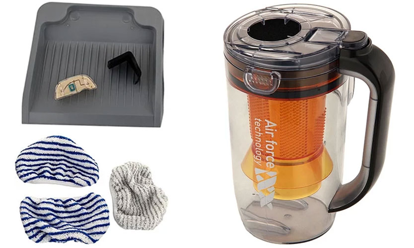 Le bac à poussière est transparent, le niveau de poussière est clairement visible. De forme, il ressemble à une cruche avec une anse et se fixe au milieu du corps. La technologie avancée de cyclone nettoie l'air efficacement. Pour vider la poubelle, retirez-la simplement et secouez-la. Sur le côté opposé se trouve un réservoir d'eau qui ressemble à un ballon plat.