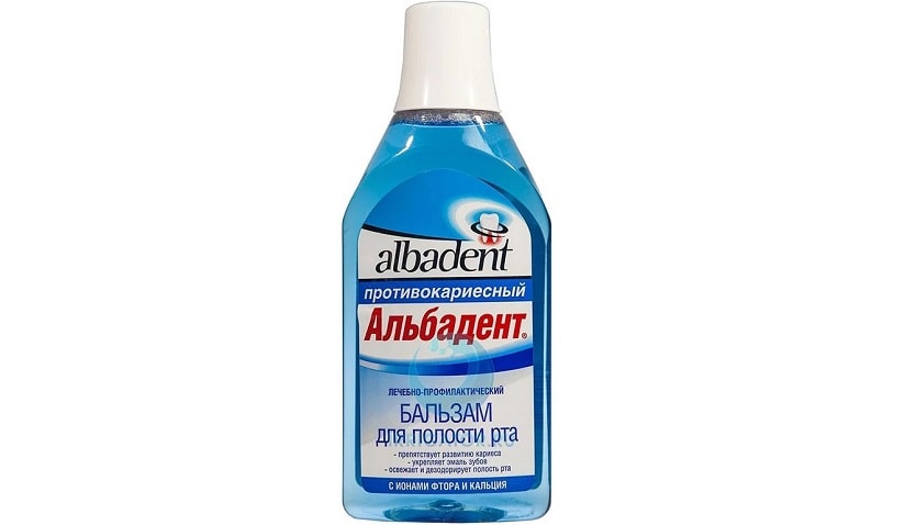 - Albadent - normalise le niveau d'acidité dans la cavité buccale, il contient des extraits de plantes et est capable de guérir les lésions mineures sur les tissus mous, aide à prévenir les caries et les affections parodontales.