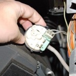 - sur la paroi latérale, trouvez le pressostat fixé avec des vis, déconnectez le connecteur avec les fils de celui-ci et le tuyau connecté au raccord avec une pince;