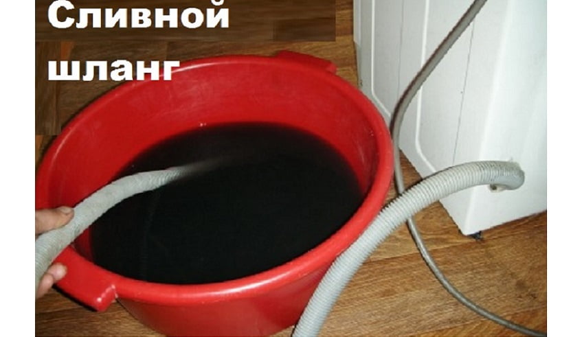 Pour accélérer le processus, inclinez la machine vers le mur, ouvrez la porte du tambour et retirez manuellement une partie de l'eau. Nous vidons l'eau restante par le tuyau d'urgence.
