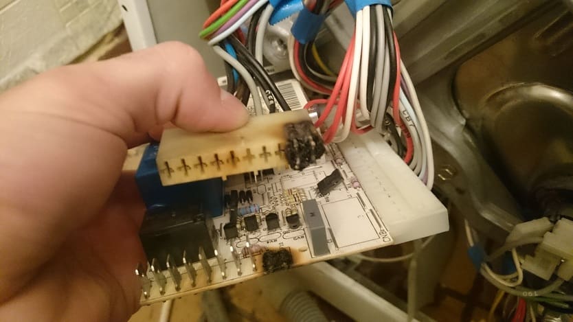 - La carte de commande est grillée. Les réparations sont parfois possibles, mais souvent remplacées par une neuve.