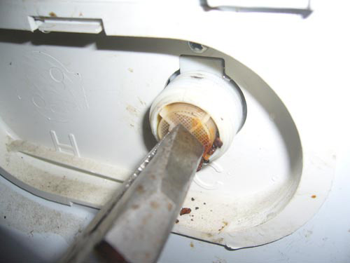 - Filtre à mailles bouché. Souvent, le filtre à mailles situé au point où le tuyau d'arrivée se connecte à la machine à laver elle-même et le protège de la pénétration de petites particules contenues dans l'eau du robinet se bouche. La machine à laver ne ramassera pas bien l'eau et donnera cette erreur. Il est nécessaire de supprimer et nettoyer le filtre: mettez en solution d'acide citrique pendant quelques heures, puis remettez-le.