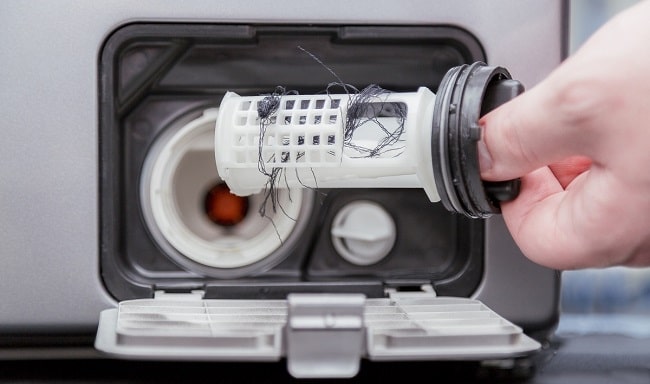 - Vérifiez le filtre de vidange, il est probablement bouché. Vous devrez le nettoyer. Vous en apprendrez plus sur l'emplacement du filtre à partir des instructions de l'appareil;